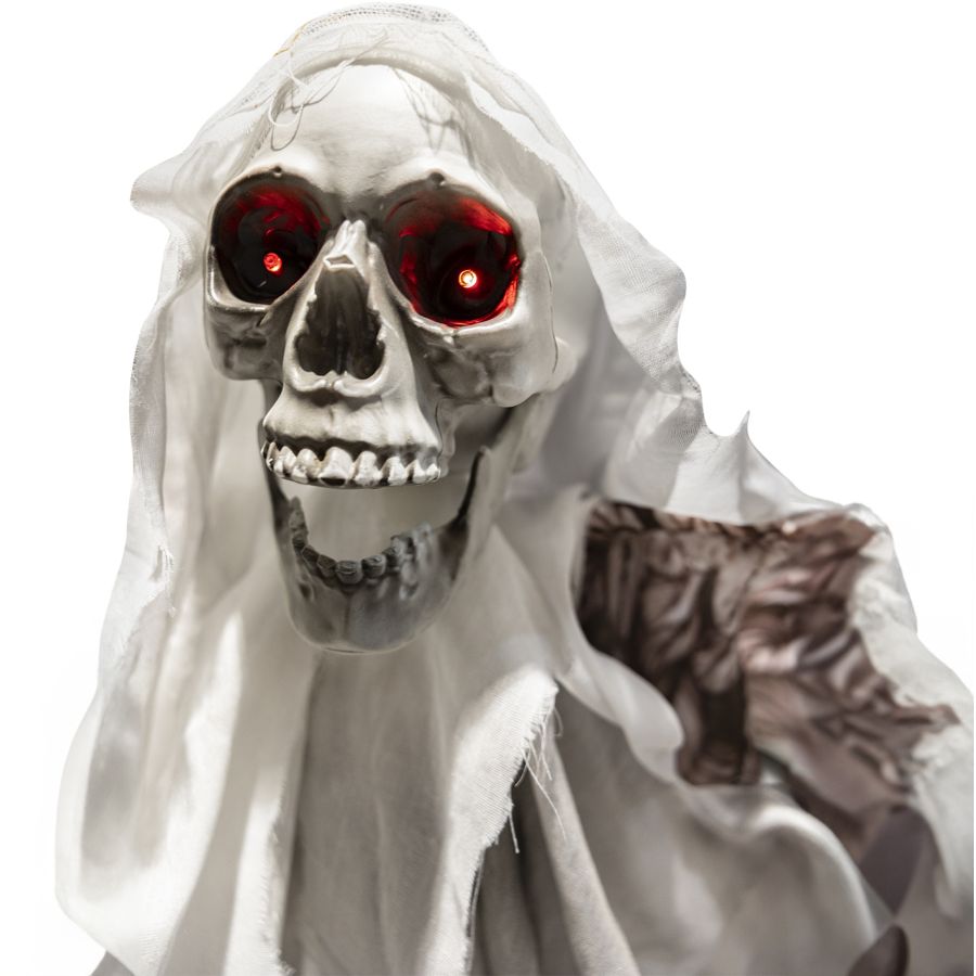 Amenez une touche de mystère à votre décor d'Halloween avec notre Ange Squelette Démoniaque Animé à Suspendre ! Mesurant 1,80 m de haut, cet effrayant personnage à suspendre est un vrai spectacle pour les yeux curieux. Équipé d'yeux rouges LED lumineux et d'ailes mobiles, il transporte votre maison dans l'ambiance d'Halloween avec ses effets sonores terrifiants de cris et rires effrayants, activés par le son et le mouvement.