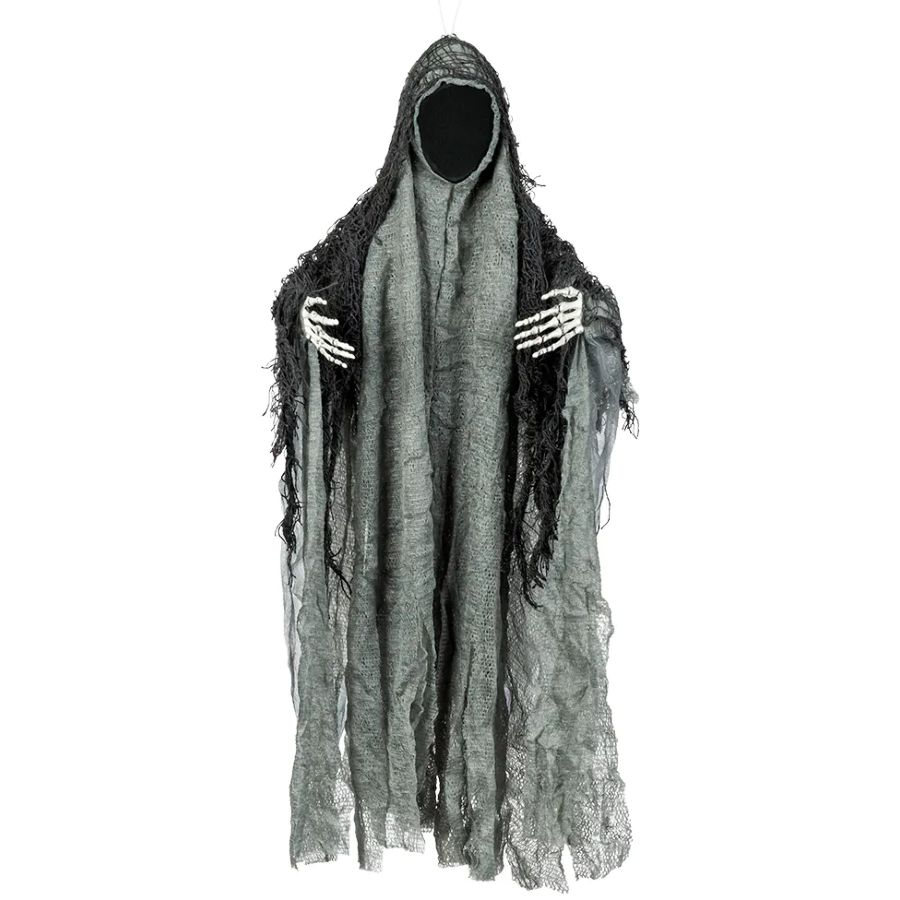 Scopri la Decorazione Fantasma Nero Senza Volto, l'accessorio perfetto per aggiungere un tocco di mistero alla tua casa. Facile da installare grazie al suo pratico anello, questo fantasma di 46 cm è progettato per essere appeso facilmente ovunque tu voglia. La sua texture morbida e aerodinamica, realizzata in 60% poliestere e 40% polietilene, delizierà grandi e piccini in cerca della perfetta atmosfera di Halloween.