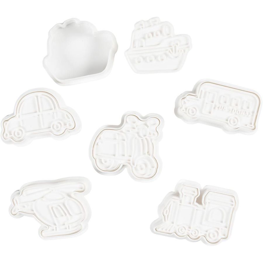 Questi tagliabiscotti a pressione sono perfetti per decorare con eleganza torte, cupcake e altri dolci. Oltre alla pasta di zucchero e al marzapane, sono perfetti anche con pasta di sale o pasta polimerica per divertenti attività artigianali. Facile da usare: basta stendere l'impasto, premere il timbro per rivelare i bellissimi dettagli di ogni mezzo di trasporto ed espellere facilmente la forma. Un modo divertente ed educativo per trascorrere del tempo di qualità con i vostri bambini!