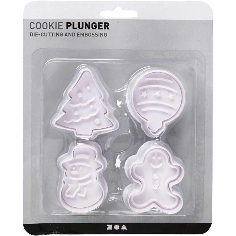 Per un Natale magico, scegli questo set di 4 tagliabiscotti a forma di timbro, tra cui un albero di Natale, un pupazzo di neve, un omino di pan di zenzero e una pallina di Natale. Pensati per gli amanti della pasticceria, questi tagliabiscotti a pressione ti permettono di decorare facilmente torte, cupcake e altre delizie. Scatena la tua creatività e crea una varietà di decorazioni con zucchero o marzapane per un cake design tanto originale quanto festoso.