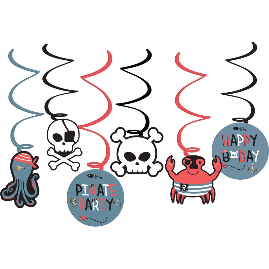 Regala ai tuoi piccoli avventurieri una decorazione memorabile per la festa con questo set di 6 ghirlande da appendere a tema pirata. Perfette per compleanni a tema, queste ghirlande di carta aggiungono un tocco di mistero e avventura a qualsiasi stanza. Caratterizzate da audaci disegni pirata, faranno brillare gli occhi di tutti i bambini presenti.