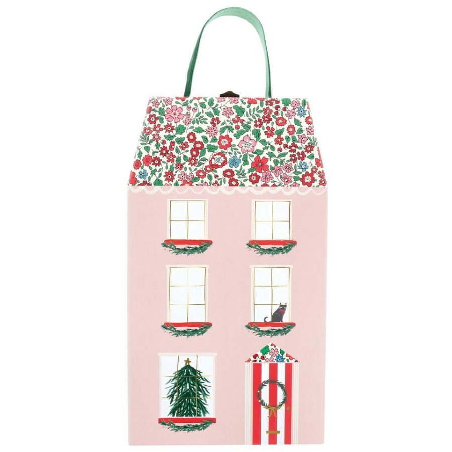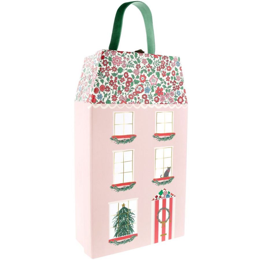 La scatola è progettata per sembrare una graziosa casetta con un tetto decorato con stampa floreale Liberty e dettagli in foglia oro opaco. Una volta concluso l'Avvento, la valigia diventa un'elegante scatola portaoggetti per conservare i piccoli tesori della tua bimba. Con il suo manico in nastro di velluto verde e una chiusura in ottone brunito, questo splendido calendario è un regalo perfetto per arricchire le festività natalizie.