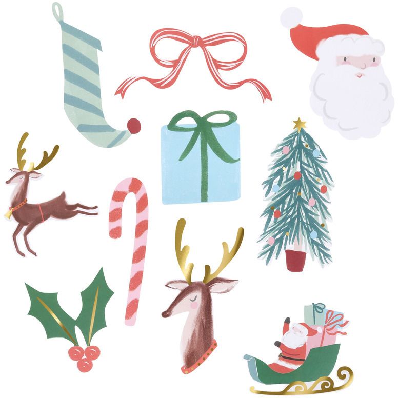 Regala ai tuoi bambini un momento magico con questo assortimento di 25 adesivi natalizi di Meri Meri. Ogni elegante scatola, ispirata alle scatole di fiammiferi, è dotata di un nastro rosso a zig zag per una facile apertura. Il set include 25 adesivi con 10 design diversi, ciascuno con una dimensione media di 9,5 cm e impreziosito da scintillanti dettagli in lamina d'oro.