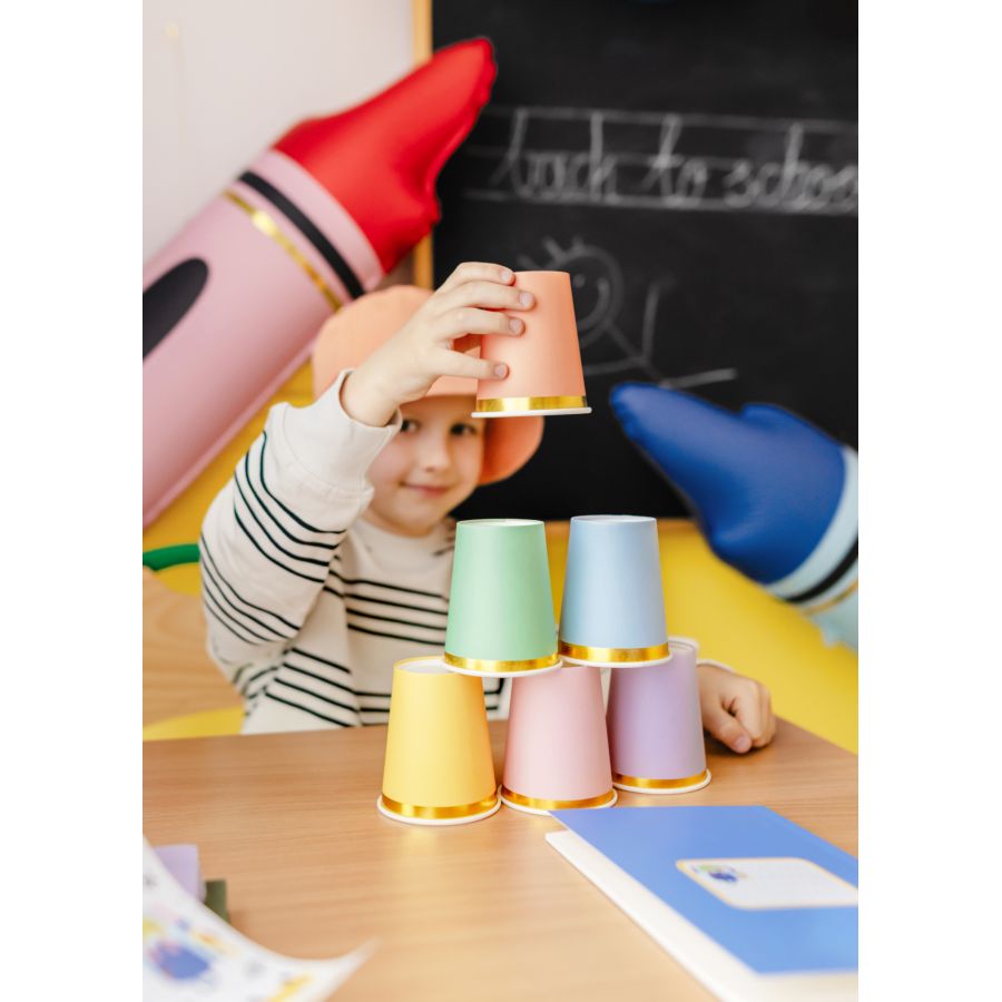 Con questi 6 bicchieri in cartone di alta qualità, i tuoi eventi in famiglia assumeranno un'aria festosa, pur rimanendo pratici. Ogni bicchiere, con una capacità di 22 cl, vanta uno stile elegante con bordi dorati, perfetto per aggiungere un tocco glamour al compleanno del tuo bambino. Questi bicchieri non sono solo funzionali, ma anche ecologici, offrendo un'opzione senza compromessi per i tuoi festeggiamenti.