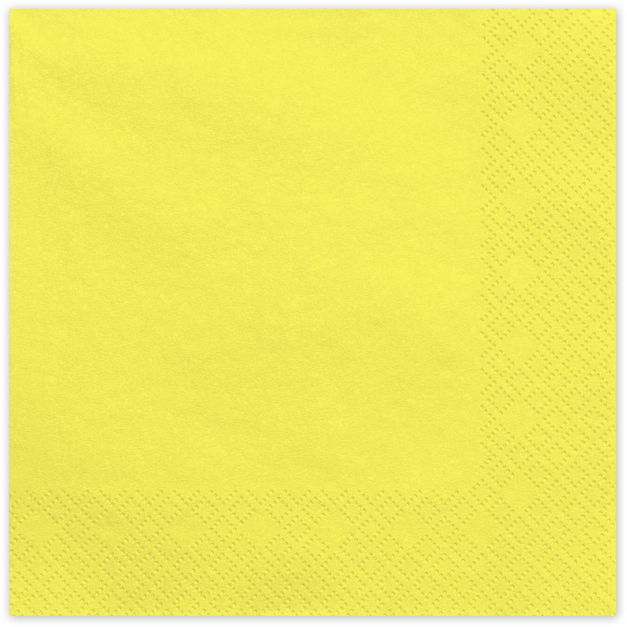 Ravviva la tavola delle tue feste con questo set di 20 tovaglioli gialli da 33 cm! Perfetti per un'atmosfera solare, questi tovaglioli di carta sono ideali per i compleanni dei tuoi bambini, aggiungendo un tocco di allegria a ogni pasto. Una soluzione pratica ma elegante, si abbinano facilmente ad altre decorazioni.