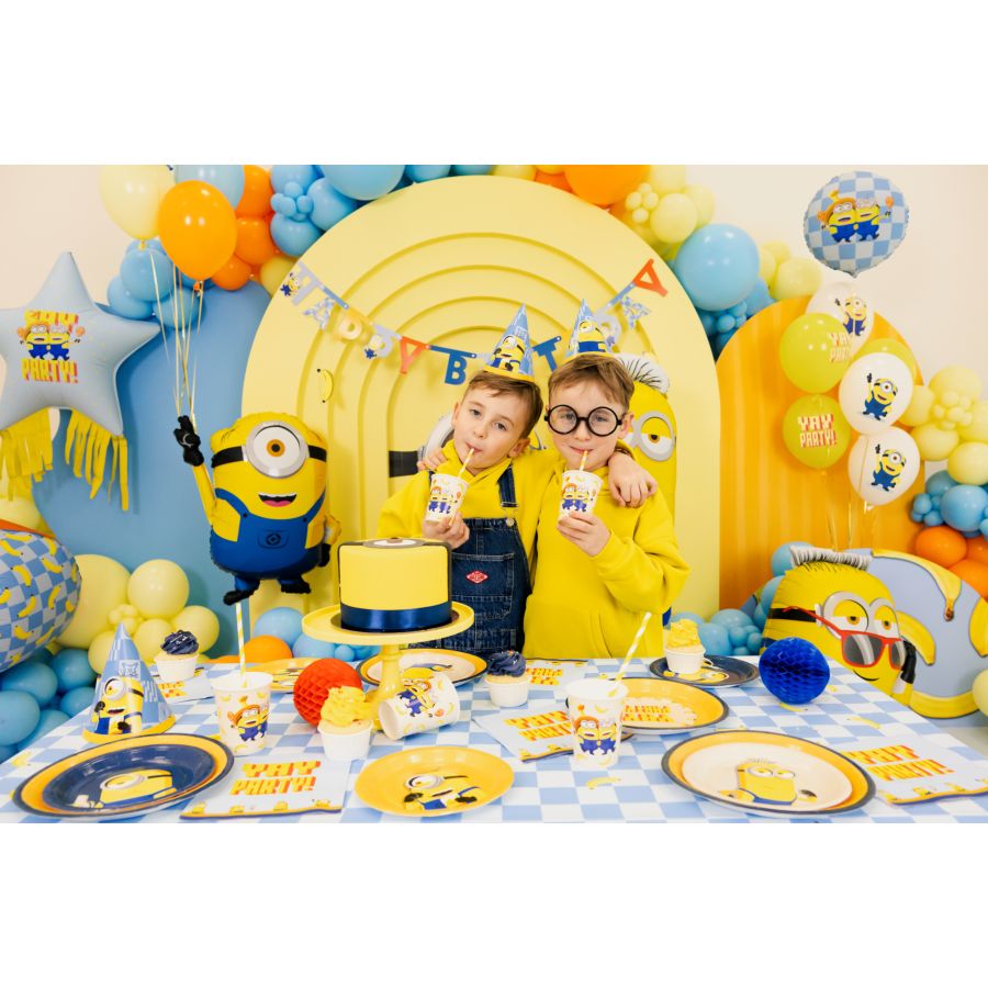 Facile da pulire e ideale per ogni tipo di festa, la Tovaglia dei Minions trasforma ogni pranzo o merenda in una vivace avventura. Lascia che i famosi personaggi in blu e giallo illuminino la stanza, facendo brillare gli occhi dei bambini e rendendo ogni momento di questo giorno speciale ancora più memorabile. Completa le tue decorazioni con questa tovaglia divertente e pratica e preparati a sentire scoppi di risate per tutta la festa!