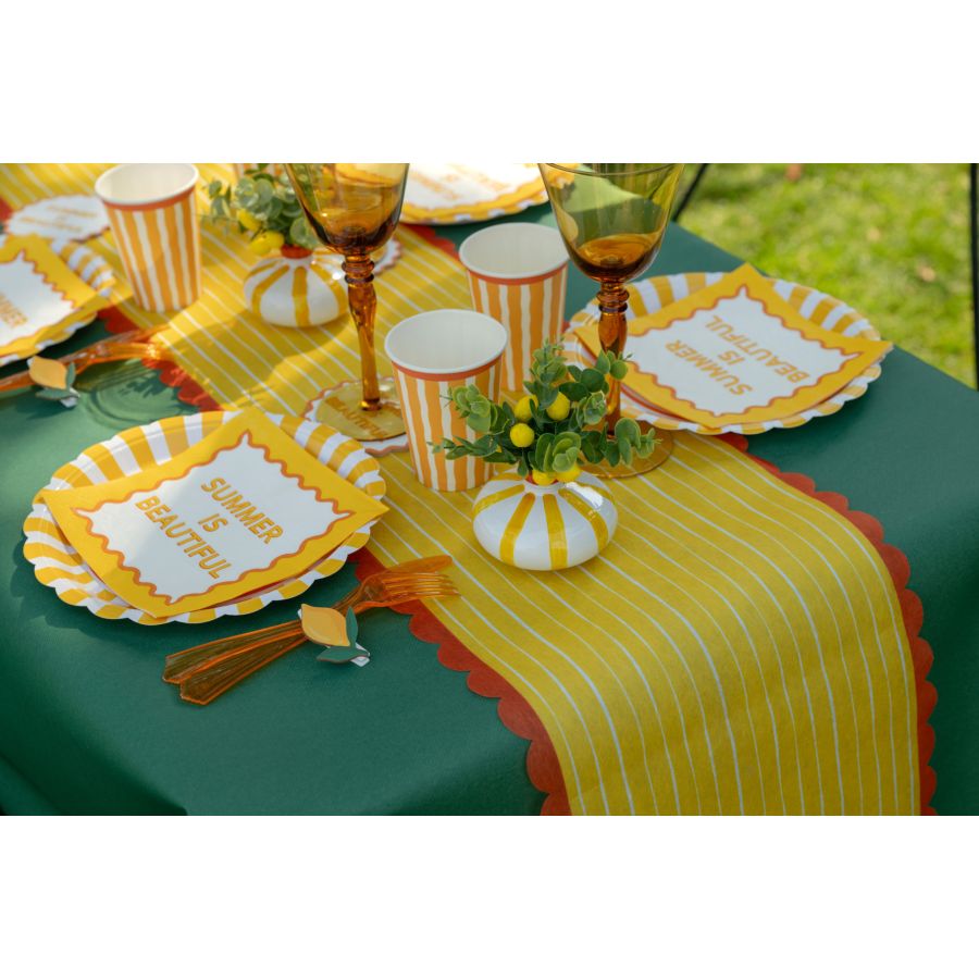 Aggiungi un tocco di eleganza alla tua tavola con il runner da tavolo Dolce Vita Giallo. Realizzato in tessuto non tessuto di poliestere, questo runner da tavolo unisce stile e resistenza, aggiungendo un tocco di luce a qualsiasi evento. Con una lunghezza di 2,5 m e una larghezza di 28 cm, si adatta perfettamente a tavoli di tutte le dimensioni, creando un'atmosfera gioiosa e accogliente. Questo runner da tavolo valorizza ogni occasione speciale, che si tratti di un compleanno o di una festa in famiglia. Il suo vivace design giallo evoca il calore del sole e lo spirito della Dolce Vita, facendo risplendere ogni momento. Rendi il tuo evento un ricordo prezioso scegliendo questo runner da tavolo, tanto bello quanto pratico.