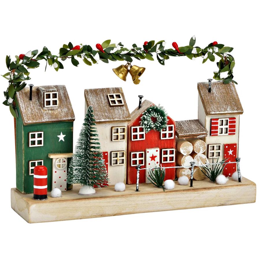 Porta la magia delle feste a casa tua con la nostra deliziosa decorazione in legno "Villaggio Natalizio". Realizzato con cura, questo villaggio in miniatura catturerà l'immaginazione di grandi e piccini. Con le sue dimensioni ideali di 21 cm (L) x 14 cm (A) x 6 cm (P), troverà facilmente posto ai piedi dell'albero di Natale o su una mensola. Realizzato in legno, questo villaggio natalizio è ecologico e resistente, garantendo anni di divertimento. Perfetto per creare un'atmosfera calda e incantevole, è l'aggiunta ideale alla tua collezione di decorazioni natalizie. Non perdere l'occasione di sorprendere i tuoi bambini con questo adorabile villaggio in legno.